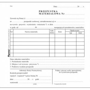 Przepustka materiałowa 2/3 A5 – 60 k. samokopiujących