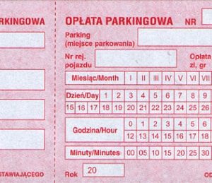 Bilet parkingowy klejony PERFOROWANY, kwit opłata parkingowa